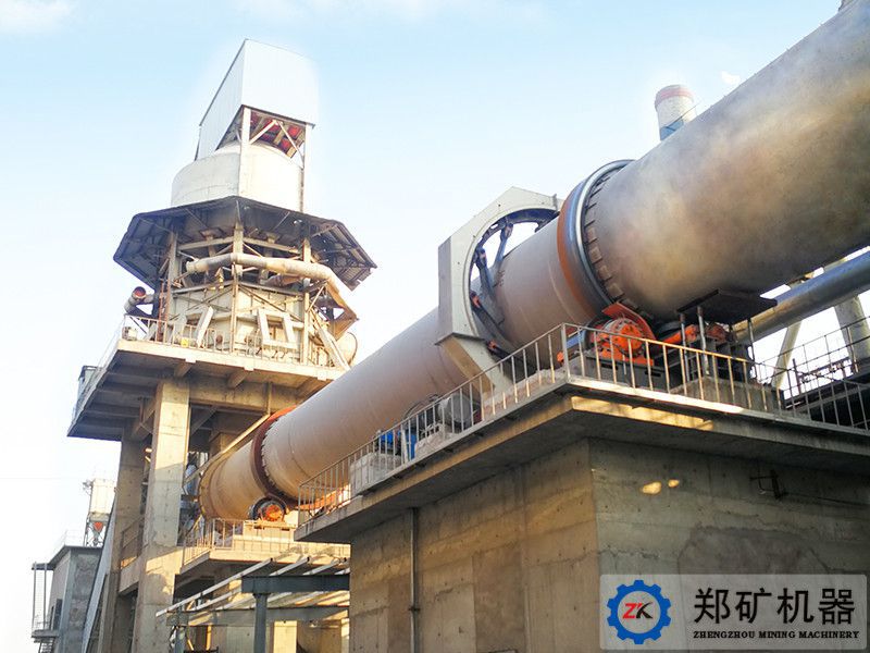 白云石選用節(jié)能環(huán)保型回轉(zhuǎn)窯,帶豎式預(yù)熱器及豎式冷卻器。料場(chǎng)粒度、質(zhì)量均符合要求的白云石由皮帶輸送機(jī)輸送至預(yù)熱器進(jìn)料管進(jìn)入預(yù)熱器,與從回轉(zhuǎn)窯流入的高溫?zé)煔鈸Q熱,被預(yù)熱至800℃以上,落至轉(zhuǎn)運(yùn)溜槽后入回轉(zhuǎn)窯經(jīng)1250℃高溫煅燒成活性煅白,再卸入冷卻器內(nèi),高溫煅白在此與風(fēng)機(jī)鼓入的冷風(fēng)換熱,將活性煅白冷卻至100℃以下,空氣被預(yù)熱至600℃以上,入窯助燃,冷卻后的活性煅白由冷卻器卸出后經(jīng)鱗板輸送機(jī)輸送至煅白料倉(cāng)。