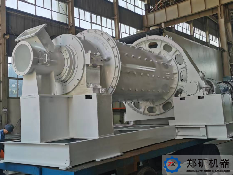 喂料設備將原料送入進料裝置的溜子內,<150℃原料經過進料螺旋筒進入筒體倉內,在倉內裝有一定數量的研磨體,由于筒體回轉,襯板將研磨體帶到一定高度,再利用其降落時的沖擊能和摩擦能將原料進行破碎和研磨,在原料被破碎和研磨的同時,由專設的引風機經過磨機的出料裝置將已研磨好的細粉吸出磨機進入下道工序。
