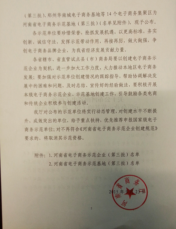 據悉,本次評選活動是按照《關于做好河南省電子商務示范企業、示范基地(*三批)申報工作的通知》(豫商電商〔2014〕19號)要求,根據各地商務主管部門的申報,依據《電子商務示范企業創建規范》,組織業內專家對申報材料進行了認真評審,根據專家意見,結合各地電子商務發展水平,在各地遴選推薦的基礎上,經實地考察、集中評審和網站公示,*終遴選出57家企業作為河南省電子商務示范企業。